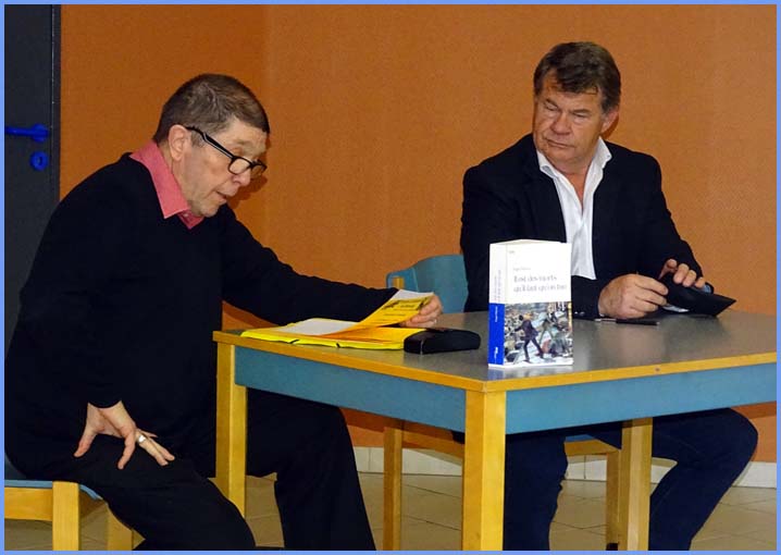 La dernière rencontre s’est déroulée à l’espace Senos, au FRAP de Saint-Pierre, aimablement mis à disposition. En partenariat avec la Librairie des Cinq Continents de Saint-Paul-trois-Châteaux, Richard Sablon, président de LSR, y accueillait de nouveau l’écrivain Roger Martin, sis à Velleron, déjà venu en octobre 2015, parmi d’autres auteurs, pour présenter son ouvrage axé sur le dernier convoi pour Buchenwald. Cette fois-ci reçu en solo, il est venu présenter et dédicacer son dernier livre, « Il est des morts qu’il faut qu’on tue ».