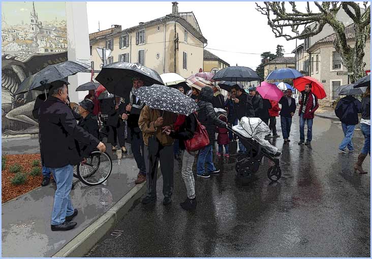 Ce samedi matin, l’humidité n’entamait en rien la bonne humeur générale. Une joyeuse cohorte de parapluies se déplaçait dans le village pour inaugurer de nouveaux espaces de vie agréables, réalisés selon la poursuite de la réhabilitation du centre ancien. A l’origine de ces travaux, Christian Peyron et Anthony Zilio, respectivement maire de Mondragon et président de la Communauté de communes Rhône-Lez-Provence (CCRLP), accueillaient donc la population et diverses personnalités dont le sous-préfet et les représentants des communes environnantes du département et de la région.