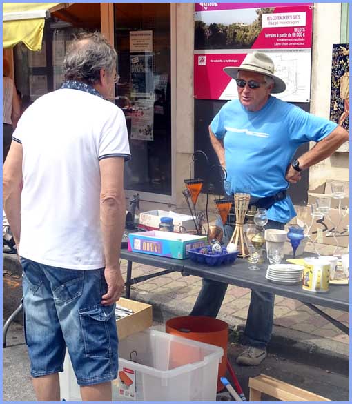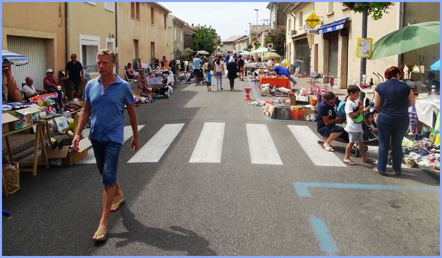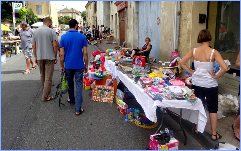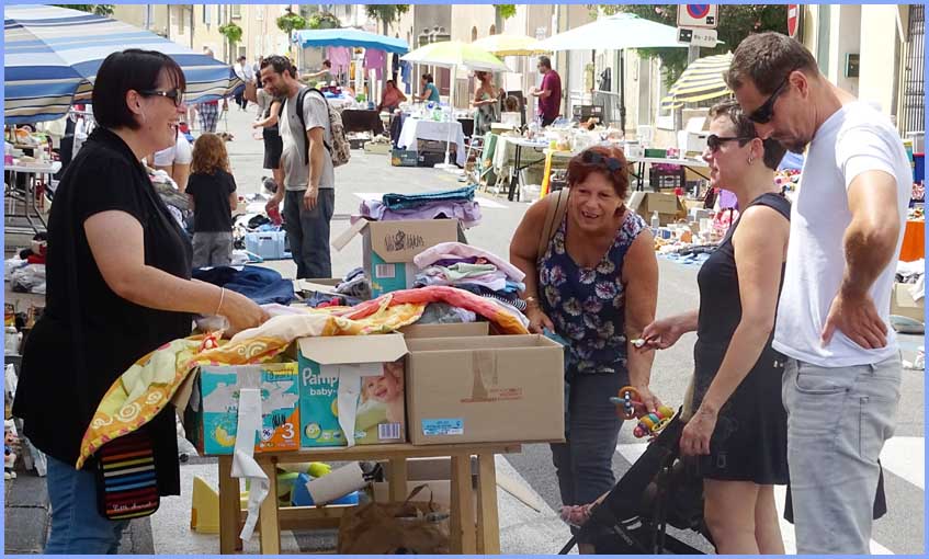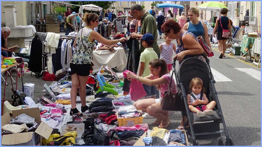 Annulée pour cause d’une météo menaçante et manque d’inscriptions, la traditionnelle brocante du 1er mai a été reportée en juillet. Toujours organisée par le Comité des fêtes, cette 13ème édition coïncidait donc avec l’animation annuelle « Mondragon en fête ». Ce cumul encerclait le centre ville dans une enclave festive, protégée par des barrières et interdite à la circulation. Sécurité oblige ! Plus d’une cinquantaine de stands s’étalaient sur l’artère principale. Installé en bordure du boulevard, le Secours Populaire n’a plus qu’à ouvrir sa porte. Une ambiance musicale était assurée par l’incontournable groupe local Pagaille. Mention spéciale à la Gaule-du-Rhône de Mondragon et son fidèle concours de pêche à la truite pour les enfants dans un grand bassin. Le soir même, sur l’esplanade du Levant, la fête continuait. A suivre…  J. P.